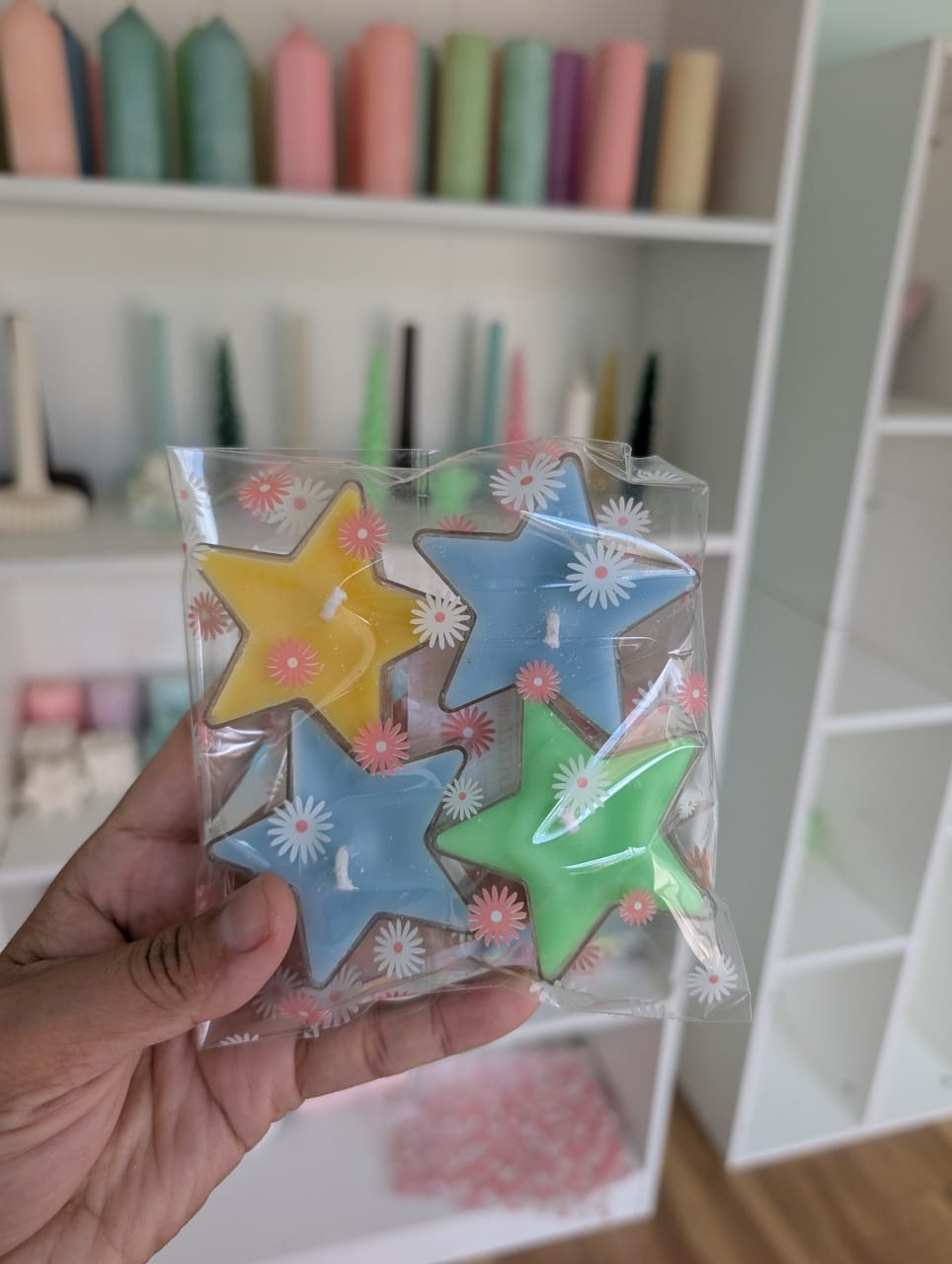 Beautiful handmade star tea light candle perfect for gifting or decor.