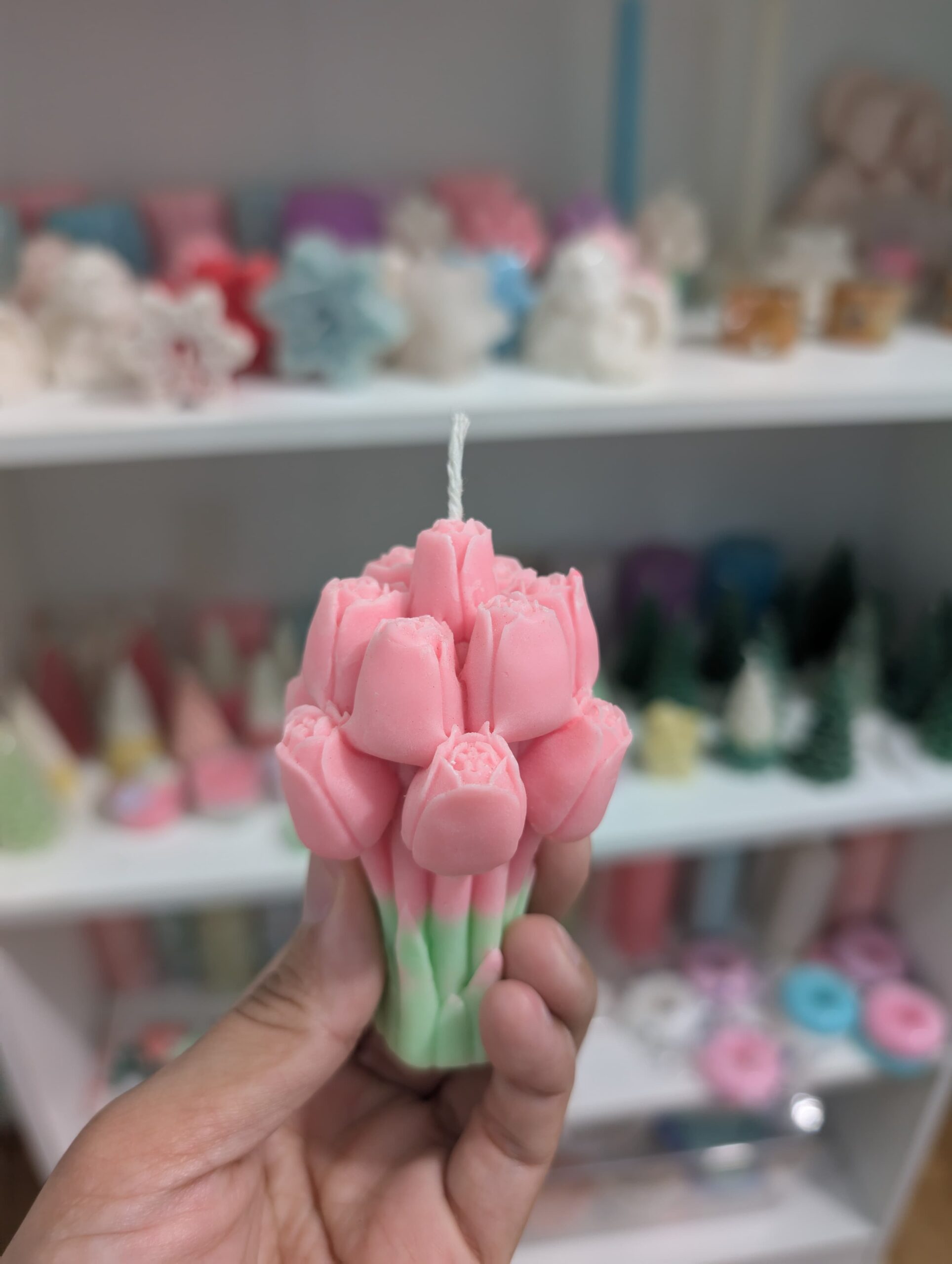 Beautiful handmade tulip candle perfect for gifting or decor.